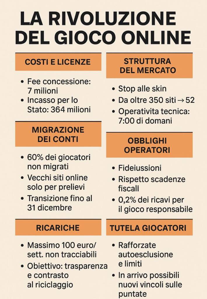 Tradotto: milioni di utenti non sanno che il loro conto dovrà essere migrato, e tra poche ore potrebbero trovarsi davanti a un sito che non consente più di giocare, ma solo di prelevare. Avranno tempo per mettersi in regola entro il 31 dicembre.