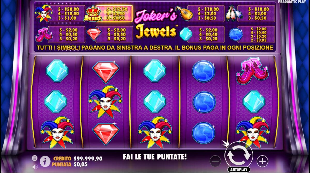 Su Joker Jewels esiste una funzione dimostrativa con cui è possibile giocare con crediti virtuali, solo per divertimento e senza rischiare euro di tasca propria.