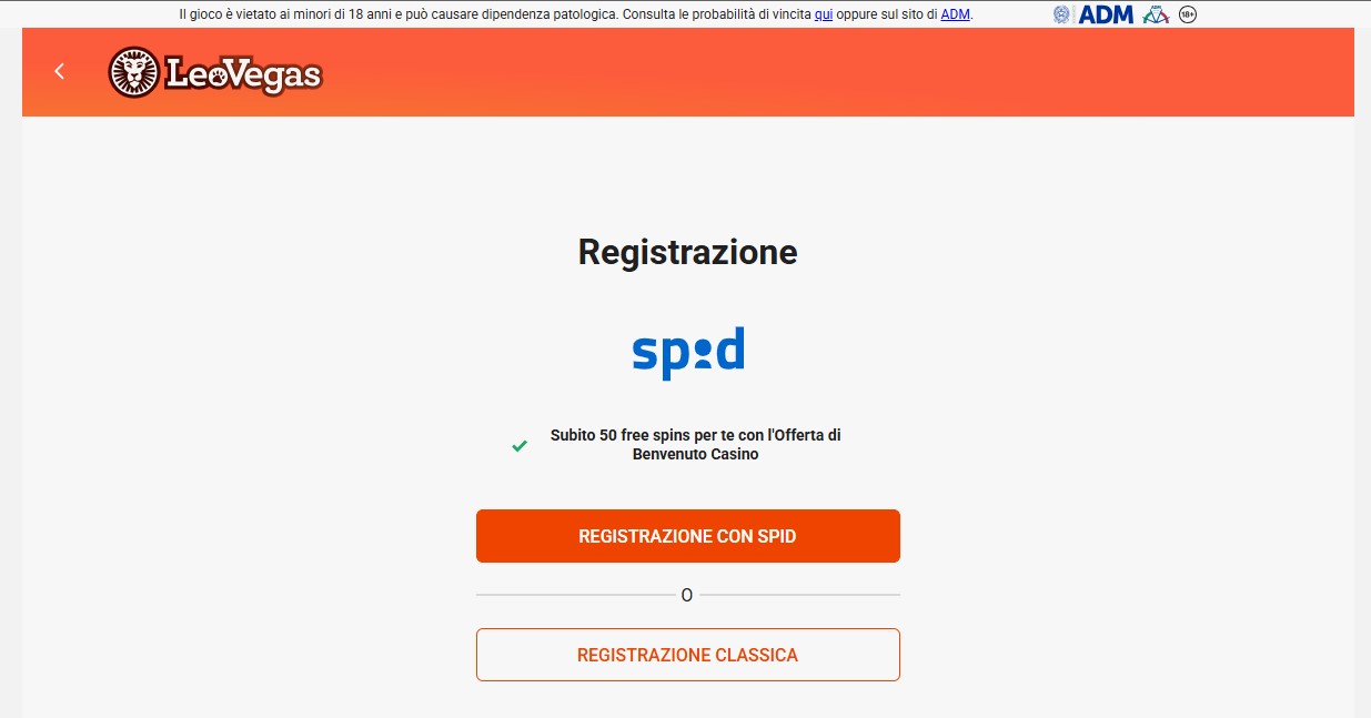 Oltre alla classica modalità di registrazione tramite verifica del documento d'identità, LeoVegas Casino consente ai players di iscriversi anche tramite SPID.