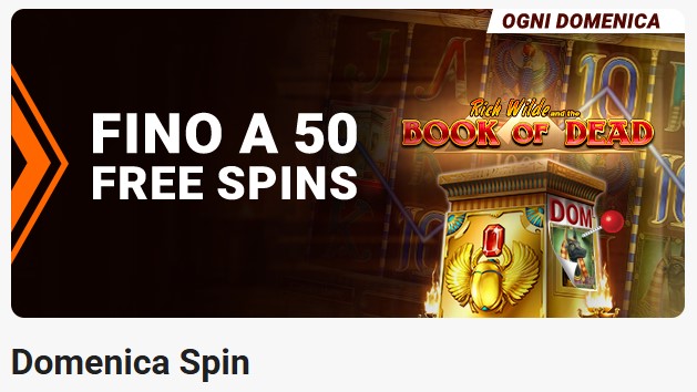 Ogni domenica hai l’opportunità di ottenere fino a 50 free spins con 5 offerte e un solo deposito sulla slot Book of Dead.