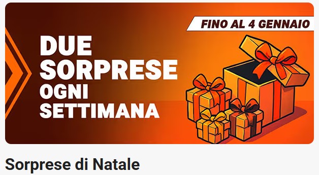 Ogni mercoledì e venerdì dalle 18:00 alle 20:00, fino al 4 gennaio, grazie alla promo Sorprese di Natale è possibile ricevere Free Spin e speciali bonus giocando al Casinò e al Casinò Live di LeoVegas.