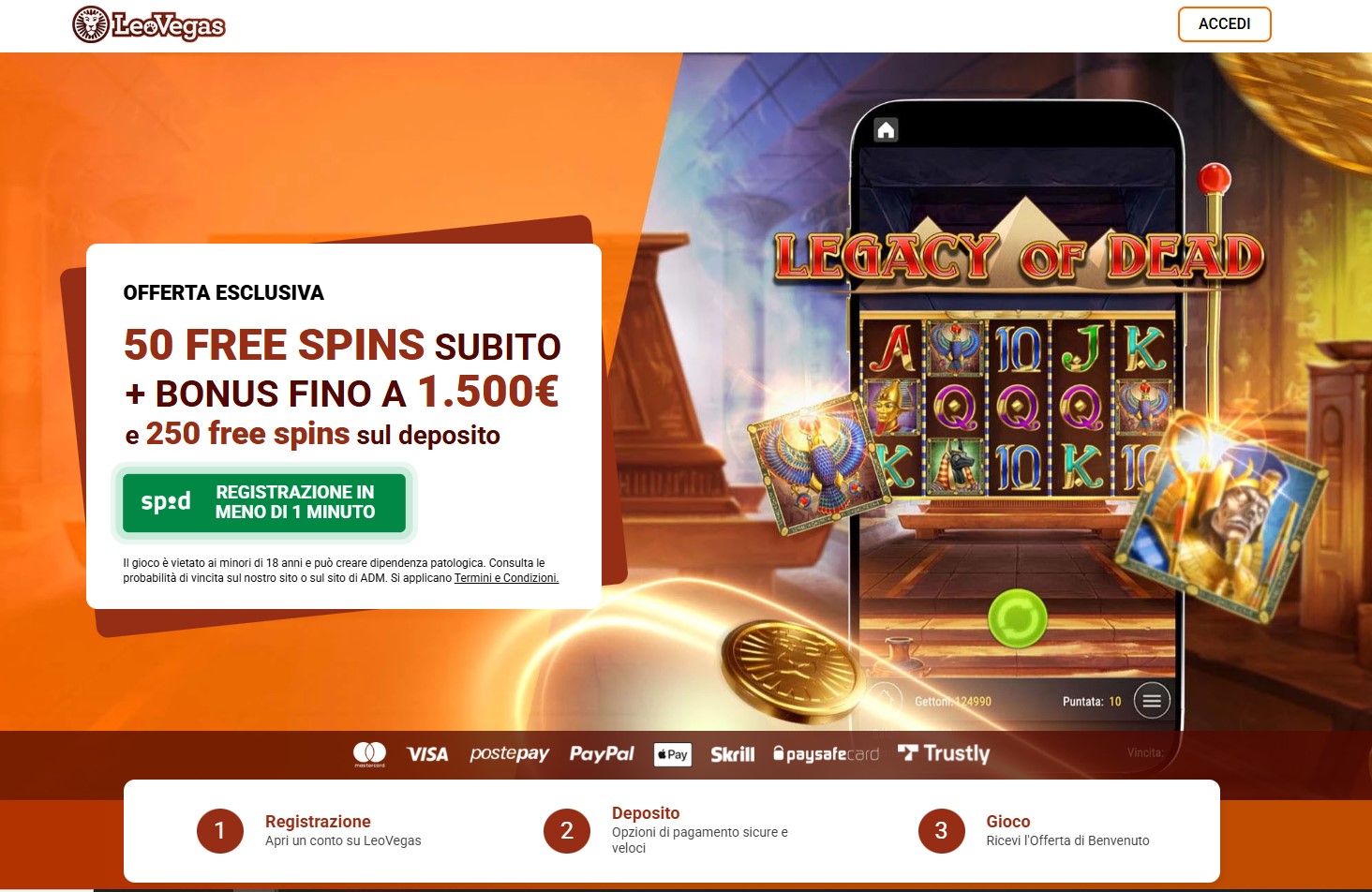 Come tutti i portali legali e autorizzati da ADM ad operare sul suolo italiano tramite regolare certificazione, anche LeoVegas permette a tutti i nuovi di utilizzare i bonus presenti all'interno della sua Welcome Offer per effettuare le prime giocate in totale sicurezza.