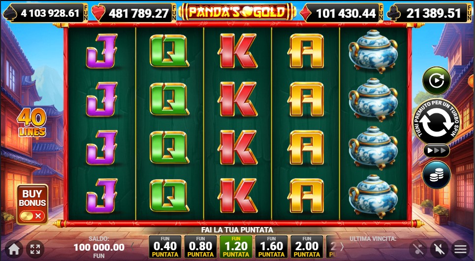 Per giocare in anteprima alla slot Panda's Gold, il portale casinò di Netwin richiede all'utente di completare una procedura di registrazione utile per garantire sicurezza e comune a tutti i principali casinò online certificati da ADM.