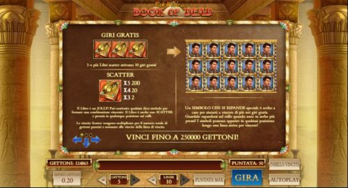 Infine il simbolo principale della slot machine, il libro “Book of Dead”, che funge da simbolo scatter e simbolo wild allo stesso tempo.