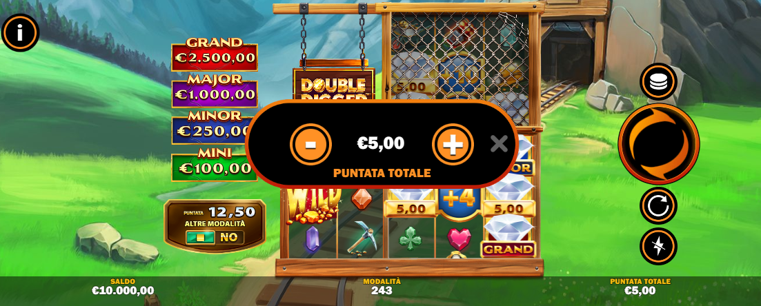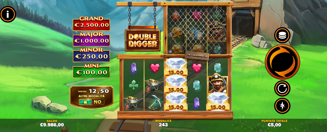 Double Digger è una interessantissima slot con cinque rulli. Il tema della miniera fa da sfondo a questo gioco colorato e divertente.
