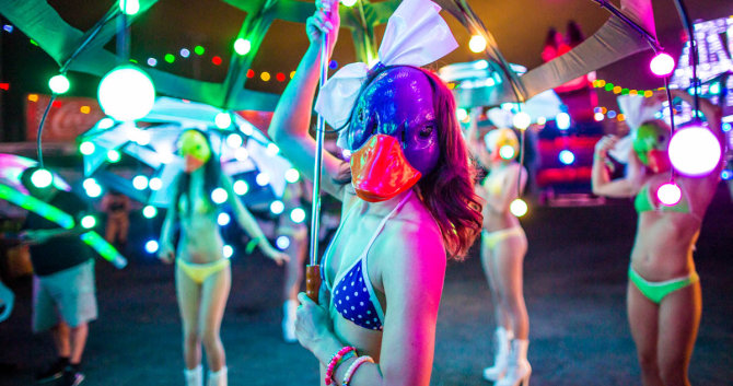 Con una decina di diversi palchi a disposizione uno con una scenografia più spettacolare dell'altra c'è modo infatti di soddisfare i gusti più diversi, quindi non solo musica techno ed house ma anche funk, hip hop, R&B, fra fuochi d'artificio, fiamme al cielo, e naturalmente decine di migliaia di persone attorno, molte delle quali non mancheranno di sfoggiare travestimenti più o meno carnevaleschi, non tradendo così il nome del festival.