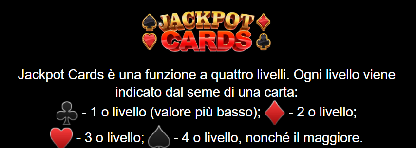 La seconda funzione da scoprire è il bonus Jackpot Cards Mystery che può essere attivato una tantum dopo che il gioco si è concluso e il giocatore ha raccolto un’eventuale vincita. Quest’ultimo può scegliere le carte nel campo di scelta finché non rivela tre semi uguali, risolvendo il “mistero” corrispondente.
