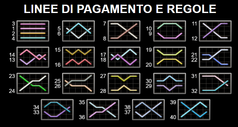 In basso ci sono tutte le puntate che si possono piazzare. Sulla sinistra vengono ricordate che 40 linee vincenti, richiamate in pratica anche nel titolo del gioco. I giocatori devono sperare di azzeccare delle combinazioni vincenti e non possono fare molto di più attivamente.
