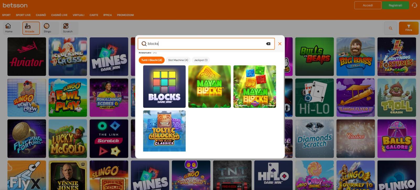 Uno dei portali legali e autorizzati ad operare da ADM che consentono agli utenti registrati di giocare a Blocks è Betsson Casino.
