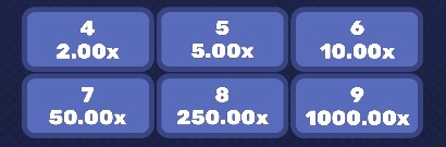 I moltiplicatori di Blocks se si sceglie di giocare a rischio basso sono i seguenti:
