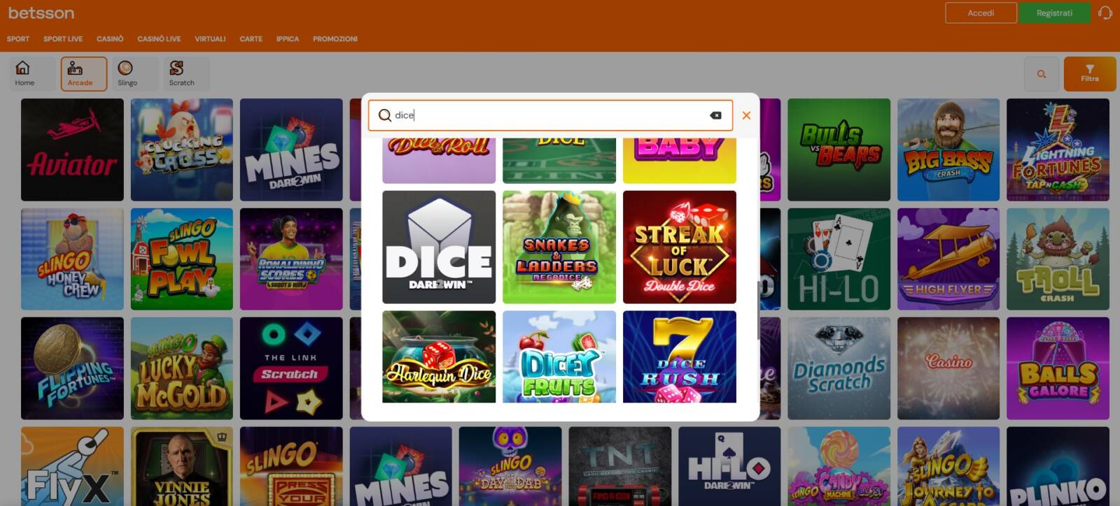 Betsson (casino)Casinò → Arcade