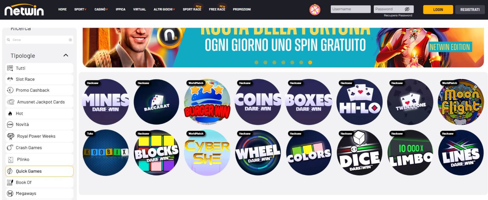 Netwin (casino)Casinò → Slot → Quick Games