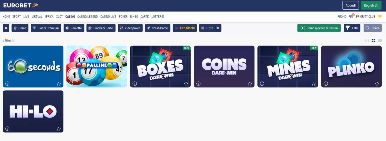 Dove trovare Hi-Lo su Eurobet