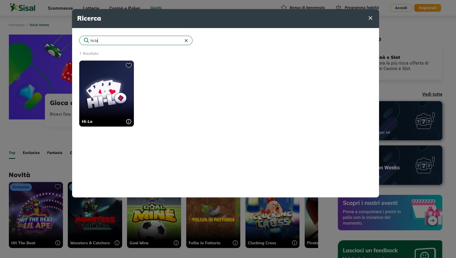 Dove trovare Hi-Lo su Sisal