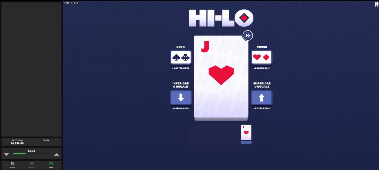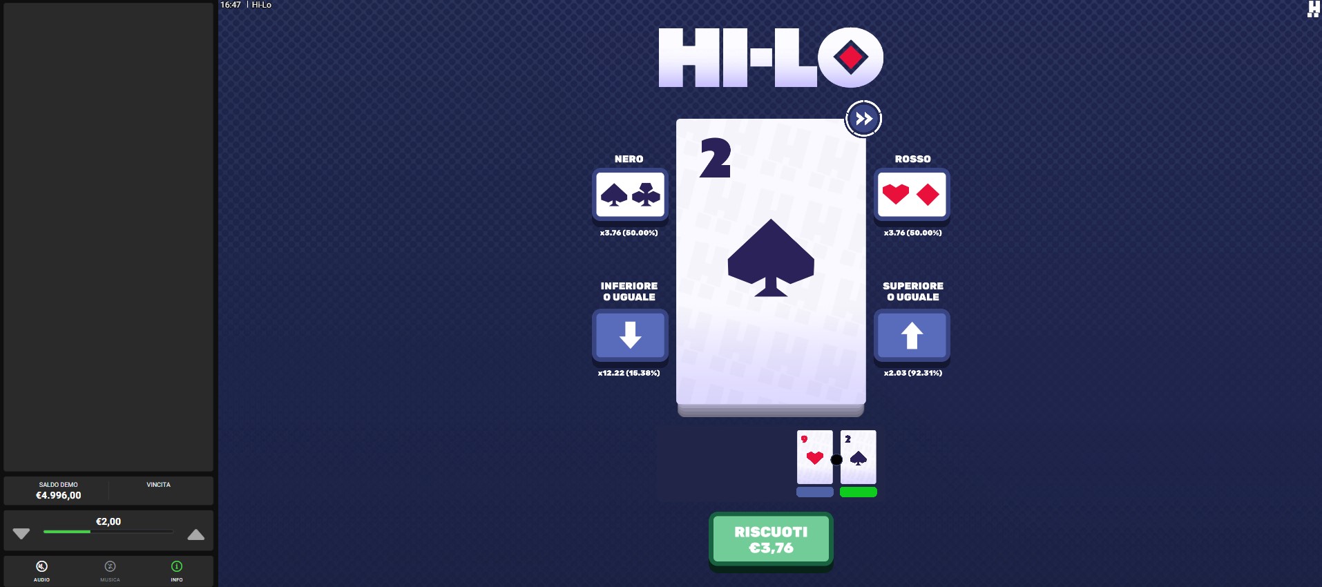 Se cercate quindi un gioco dove provare ad indovinare la prossima carta senza puntare grandi somme e dove il divertimento viene sempre prima dell'esito del turno, allora Hi-Lo è il titolo adatto a te.