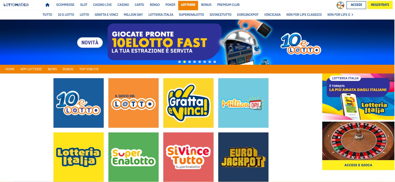 - 6 Dentro l'offerta di Lottomatica: dal bonus benvenuto casino alla Lotteria Italia