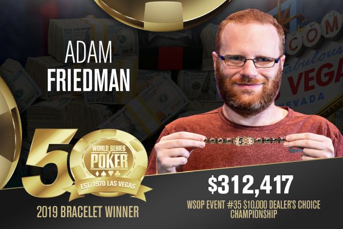 L'impresa è di quelle straordinarie, senza se e senza ma. La scala dei valori è sempre quella: vincere un torneo è difficile, vincere due volte è molto difficile, vincere due volte in fila difficilissimo, e non parliamo di farlo a livelli altissimi come le WSOP. Ci è riuscito qualche ora fa Adam Friedman, che ha portato a casa il 10.000$ Dealers Choice 6-handed dopo averlo già vinto nel 2018.