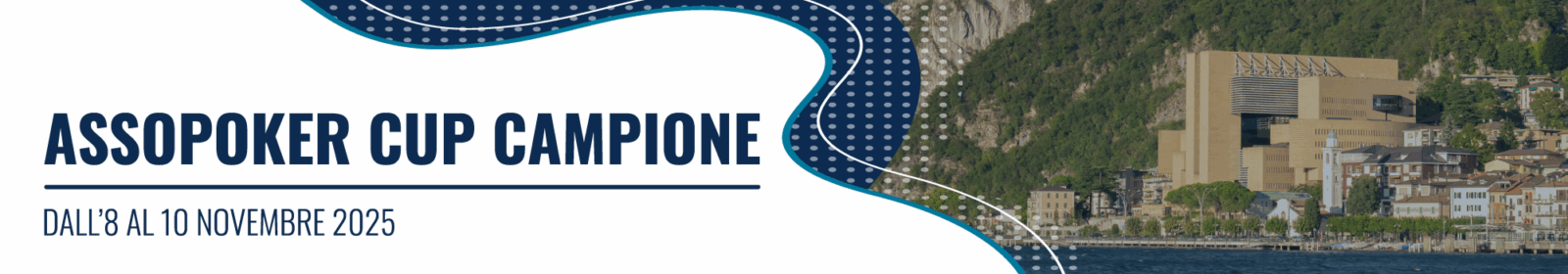 Non perdere l’Assopoker Cup: un torneo, una festa, una storia lunga 20 anni. Iscriviti, vivi l’emozione e unisciti alla community di Assopoker! Seguici sui nostri canali social per tutte le novità e preparati per un evento indimenticabile al Casinò di Campione!