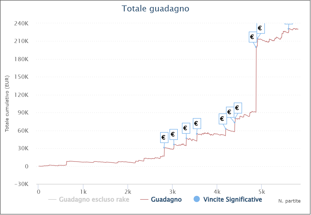 Ovviamente, come si vede dalla impennata del grafico, la vittoria del Sunday Million dei record ha avuto ampia voce in capitolo