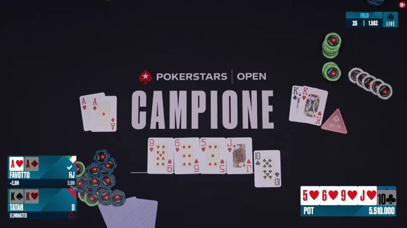 PokerStars Open Campione: Favotto vola (anche) con gli assi, è in testa a 15 left!
