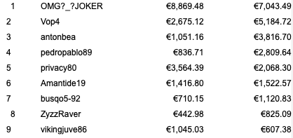 Nemmeno ieri la regola è venuta meno, anzi, se scorriamo il payout finale del Night On Stars Super KO Edition, ci accorgeremo subito di quanto essa sia stata rispettata in pieno.