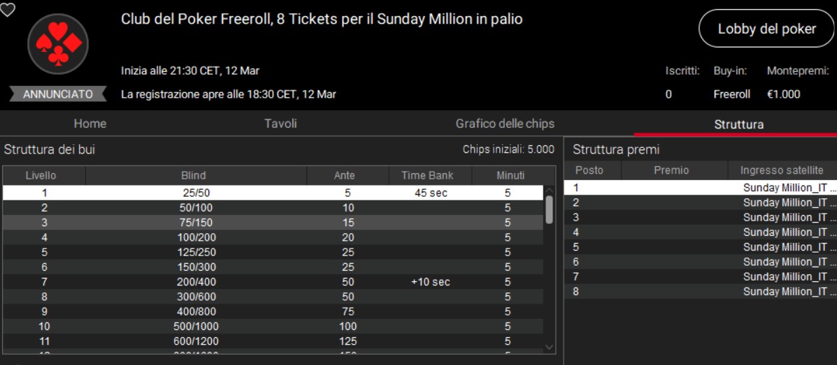 In pratica, ogni torneo assegnerà otto ingressi diretti al Sunday Million, il grande evento domenicale del 29 marzo che rappresenta uno dei target più ambiti di questa fase della stagione.