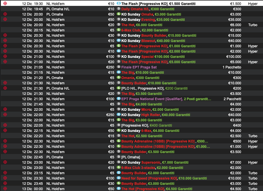 Sabato incentrato sui KO 8-Max, mentre per la domenica occhio al Mini Sunday, al Sunday Event e Sunday HR.
