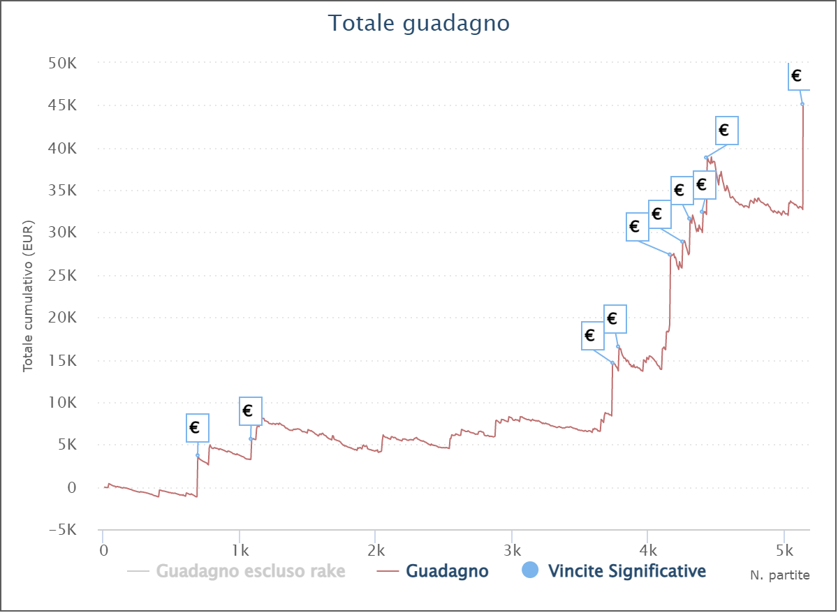 Il quinto classificato, 'dompell02', prima dei 22.766€ di stanotte aveva vinto al massimo 340€. Il miglior premio del secondo classificato, 'graditi00', era invece di 212€. Il primo gioca dal 2018 e oggi ha uno storico di 290 tornei dal costo medio di 8,4€. Il secondo si è iscritto a settembre 2021 e sulla room della picca rossa ha giocato 67 tornei a buy-in medio 19,99€.