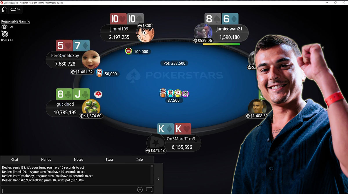 L'azzurro gira 3 5 e con scala si laurea vincitore! Ecco il replay della mano: