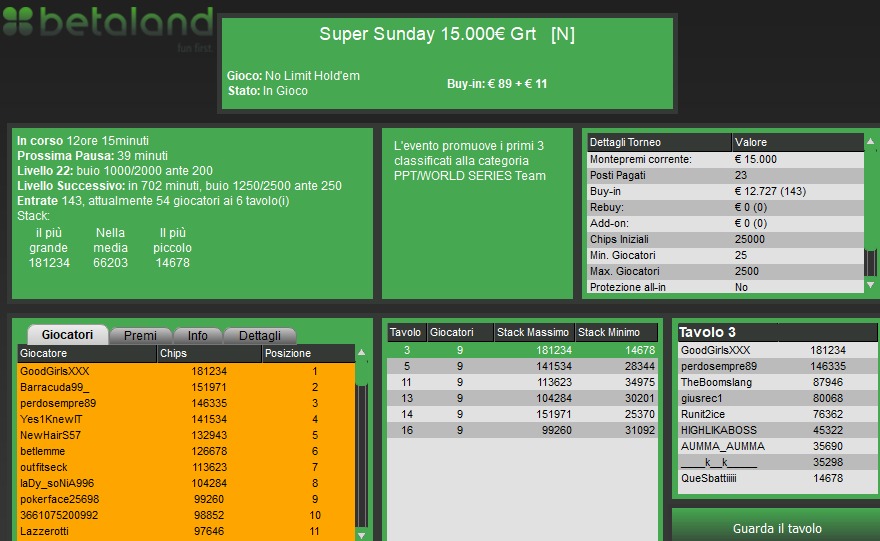 Secondo report del lunedì mattina nel quale andiamo a curiosare sui tornei delle altre room. Bene “Gaspare Sposato” su party