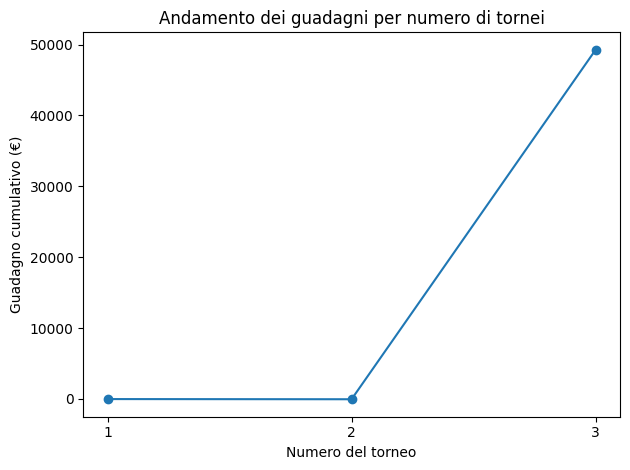 Tutto questo non al day 1 di domenica 4 gennaio, ma al day 2 di lunedì 5. Entrato in gioco con pochi bui, il vento della run lo ha spinto fino al deal a cinque finale. Il grafico di 'Sansone2026' che abbiamo elaborato è di quelli che davvero in pochi possono vantare.