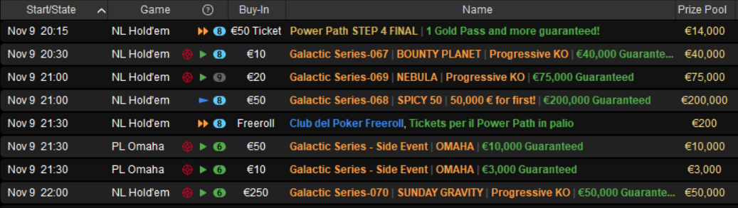 Facciamo subito ordine e vediamo i tornei di poker online più interessanti in partenza nelle giornate di sabato 8 e domenica 9 novembre sulle migliori poker room online italiane, che offrono bonus benvenuto ai nuovi iscritti.