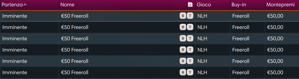 Ogni giorno puoi sapere il programma dei tornei gratis in partenza sul nostro calendario freeroll che viene aggiornato su base quotidiana.