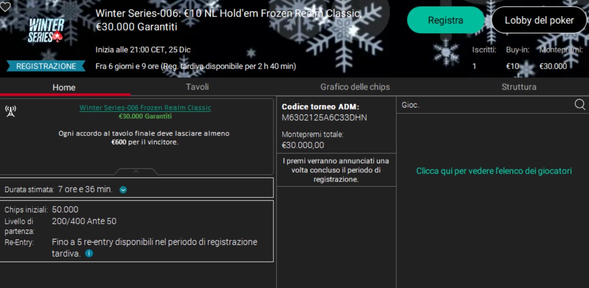 27 Dic21:00Winter Series-028ClassicNL Hold'em35.000