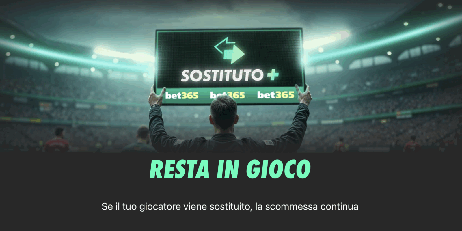 Bet365 Scommesse presenta "Sostituto+", una nuova speciale funzione dedicata a tutti gli appassionati di calcio in Italia. Ecco di seguito come sfruttare questa nuova opzione, che permette di ampliare la gamma di scenari vincenti sulle Player Bet.